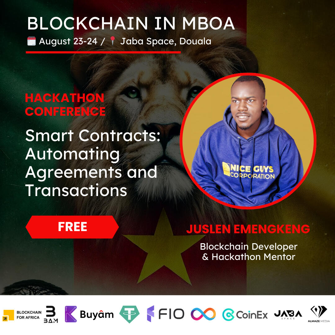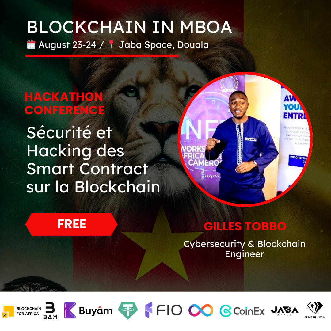 7:30 - Doors opening/breakfast8:00 - Welcome speech & hackathon intro8:15 - Smart Contracts: Automating Agreements and Transactions with Juslen Emengkeng, blockchain developer8:45 - Financial Inclusion Through Blockchain with Jane Kelly, blockchain developer & hackathon mentor9:15 - The Fundamentals of Blockchain Programming with Mbuh Divine Cho, blockchain developer & hackathon mentor9:45 - Sécurité & Hacking des Smart Contracts sur la Blockchain with Gilles Tobbo, cybersecurity & blockchain engineer10 - 12 hackathon