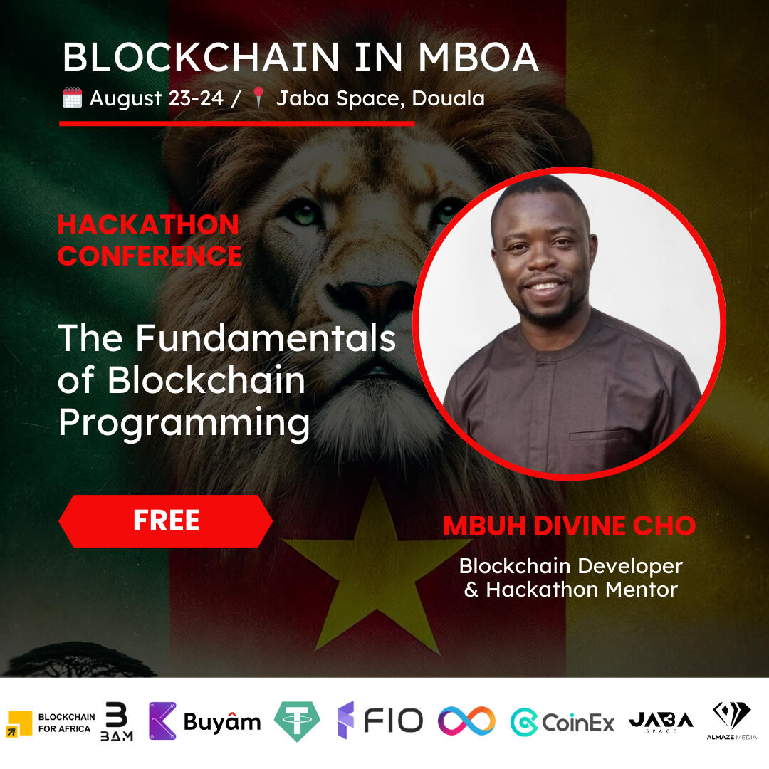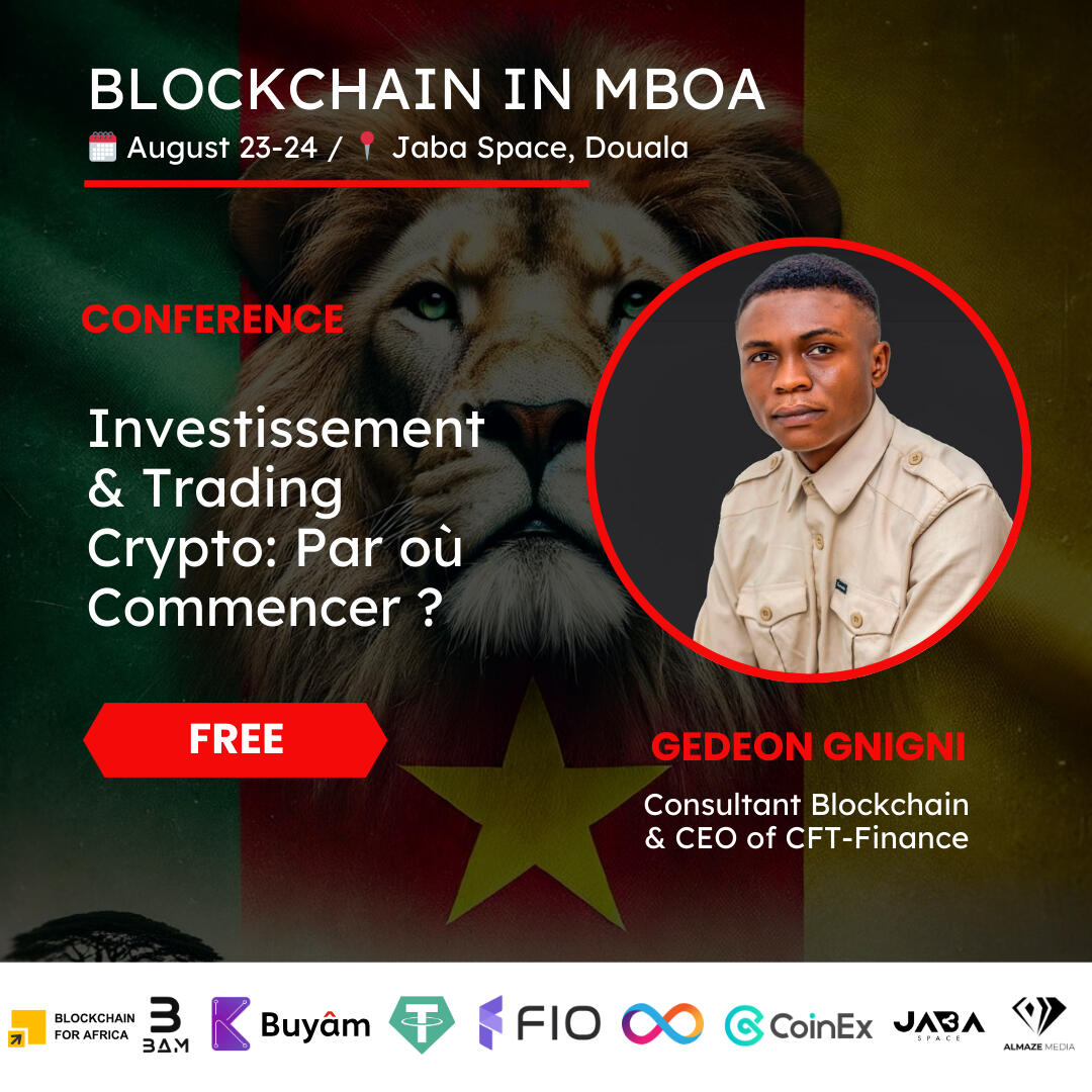 7:30 - 12:00 Hackathon continuation12:30 Doors opening13:00 Welcome speech13:15 Investissement & TradingCrypto: Par où Commencer ?with Gedeon Gnigni, consultant blockchain & CEO of CFT-Finance13:45 Comment se Comporter Durant le Bull Run with Wilfred Sinak14:15 Comment Saisir les Opportunités Crypto en 2024 with Steve Tiwa14:45 Crypto made Easy with FIO protocol with Steve Kengne14:45 DeFi et Revenu de Base with Cyrille Frank Teukam15:15 DeFi et Revenu de Base with Cyrille Frank TeukamBREAK15:45 Blockchain: propulseur de l'entrepreneuriat Informatique au Cameroun - Longo Shaquille16:15 What is Blockchain for Africa & African ? with Mr Cho Rimsky16:45 Application Areas & Opportunities for the Development of African Economies with Ricardo Konlack17:15 Hackathon projects presentation17:15 cocktail networking